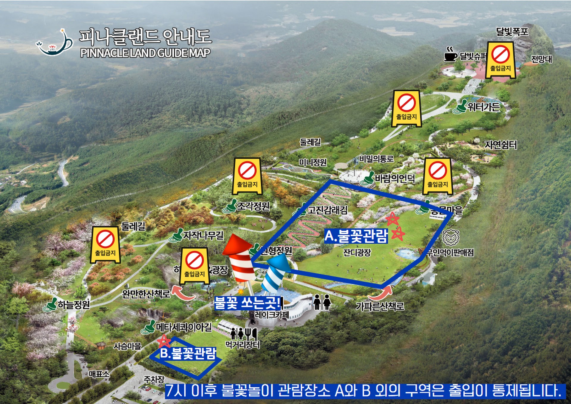 팁!! 피나클랜드 가까운 곳은 불꽃놀이가 끝나면 사람이 너무 몰리니 조금 걷더라도 제3,4 주차장을 이용하시면 비교적 빠른 출차가 가능합니다.